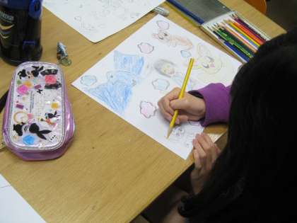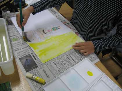 想像した絵を,絵の具や色鉛筆などで表現していました。立体で表現している子どももいました。
