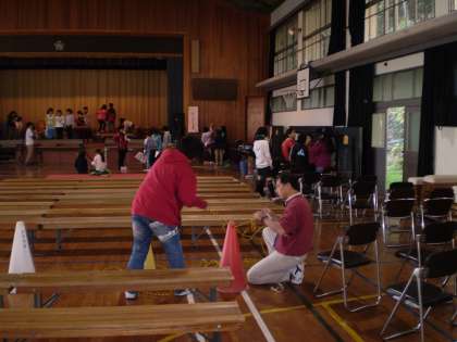 学習発表会の会場準備をしています。