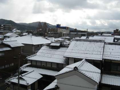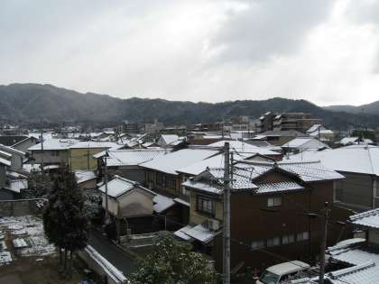 一番上の写真には,雪化粧した如意ヶ岳の「大文字」が,遠く(写真中央上部)に見えています。