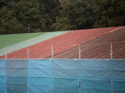屋根の防水塗装工事ですが,素人目ではあまり進んでいるようには思えません。