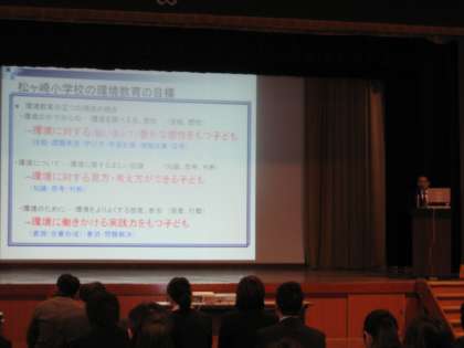 研究の取組をご報告いたしました後,まず,「学校における食育の推進」と題しまして,京都市教育委員会体育健康教育室指導主事の尾松廣明先生からご講演いただきました。