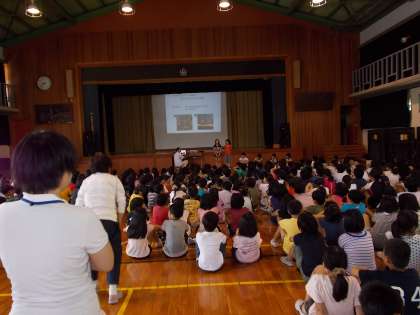 本日,「児童朝会」をおこないました。環境委員会が「松ヶ崎にすんでる野鳥 どっちどっち」というクイズ形式での発表をしました。何題かクイズをして盛り上がりました。最後に「鳥や虫,花や木を大切にしましょう。自然を守りましょう。」と呼びかけました。