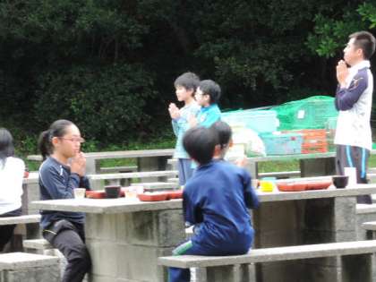 夕食の様子です。みんな楽しく食べていました。夕食後は,ナイトハイクまで時間があるので60畳でくつろいでいます。