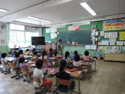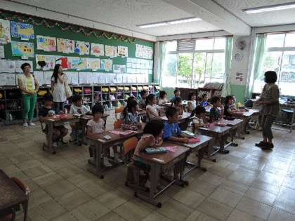 1年生は初めてなので,教室でどんなことをするのか練習してから選書会をしているランチルームに行きます。