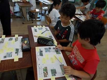 次に一人で考えた事をもとに,グループでつながりを考えました。グループで活発に意見の交換ができました。