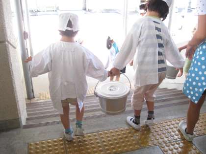 夏休みが明けに給食が再開して3週目に入りました。給食当番もずいぶん慣れてきました。力を合わせて行う微笑ましい姿が見られます。