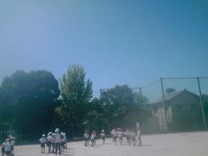今日は台風一過,目の覚めるような青空の下,体育の学習をしました。