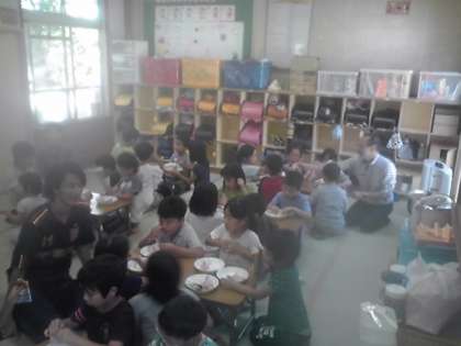 今日は,ちょっと用事があり,放課後に児童館をのぞきました。ちょうどおやつをいただいているところでした。児童館の先生から,日曜日に行われた児童館の「親子まつり」に対するねぎらいの言葉がけがあり,子どもたちは感想を交流していました。