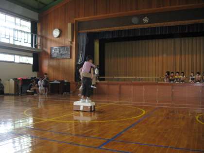 6年生がおんぶしての入場です。