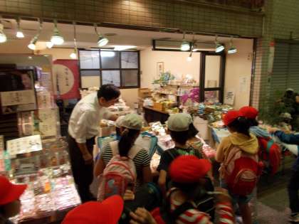 錦市場では,スーパーマーケットの見学に引き続き,お店の人の工夫や願いなどについてインタビューをしました。どのお店の方も親切に話をしていただき,とてもよい社会見学になりました。錦市場のみなさんありがとうございました。