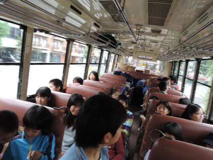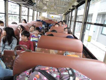 バスの様子です。クイズをして楽しみました。