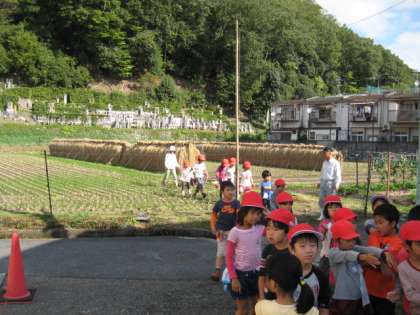今日は,天気にも恵まれました。稲刈りが終わった田んぼは,秋の日本の風景の1つですね。このような風景が,私たちの松ヶ崎で見ることができます。
