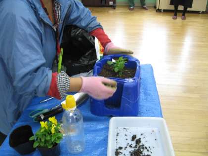 今日はチューリップとビオラを植えます。その植え方を教えていただきました。