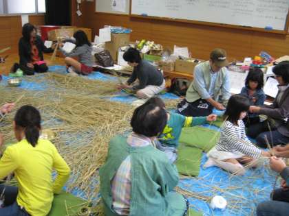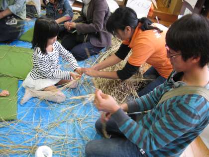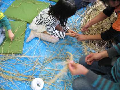 しめなわ作りをしました。教えていただきながら交流を深めました。