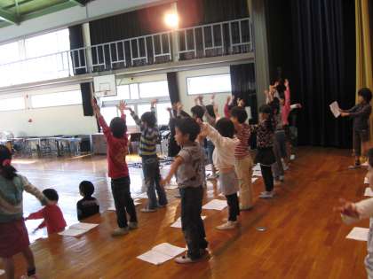 子どもたち,なかなか‘研究’しているな,おうちなどでもがんばって練習しているな,ということを感じました今日の講堂練習でした。