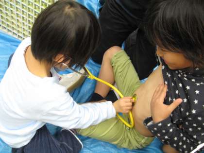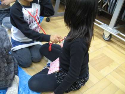 チロ,ミロの鼓動を聞く前に,自分たちの鼓動を聞き合いました。