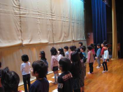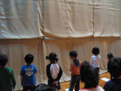緞帳が下りると,何となく雰囲気が変わります。この瞬間,子どもたちに緊張感が漂っていました。