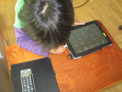 教室では,大型テレビにiPadを繋げて