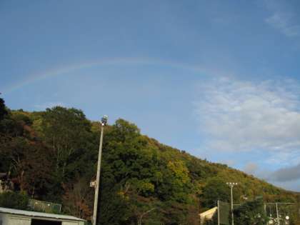 昨日の夕方,ふと運動場を見ると,東の空に虹が出ました。美しい虹でした。