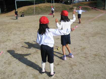 暖かな秋晴れの中,いろいろな技や連続とびに挑戦していました。
