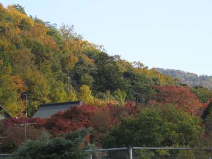 運動場から見える大黒天妙円寺の紅葉が美しくなってきました。