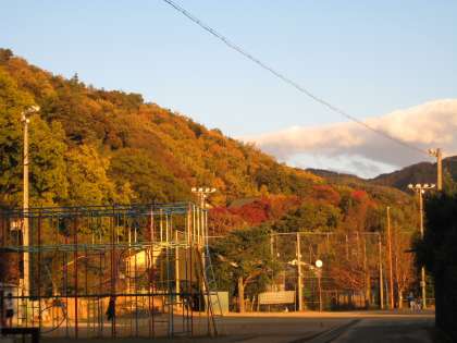 夕方,唱歌「もみじ」に「秋の夕日に 照る山もみじ」と歌われているような景色が,玄関前から見られました。明日のリハーサルにエールを送ってくれているようです。