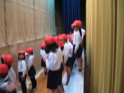 いよいよ1年生の出番。幕が開く前の緊張の時間です。