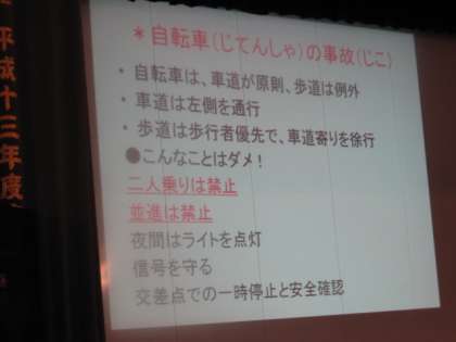 学校長から,「自転車の正しい乗り方」について話がありました。タイムリーでした。