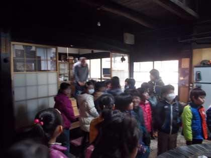 今日は,社会見学でした。行き先は,学校から歩いて5分。地域に住んでおられる岩崎皓(あきら)さんのお宅です。