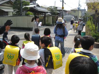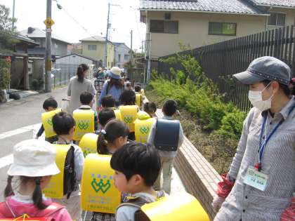 下校2日目。ブロック別に並び,お帰り当番の方と一緒に帰りました。