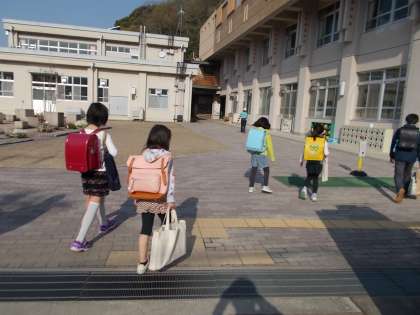 先週後半には,お迎え当番のお姉さんと手をつないで登校する1年生の姿も見られました。