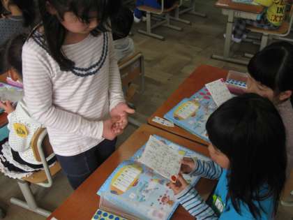 1年生のときに育てたアサガオの種を,新しい1年生にプレゼントしに行きました。渡すときに言う言葉も,がんばって練習して行きました。ちょっぴり緊張したけれど,ニコニコ笑顔で,お兄さんお姉さんらしく1年生に話しかけることができました。
