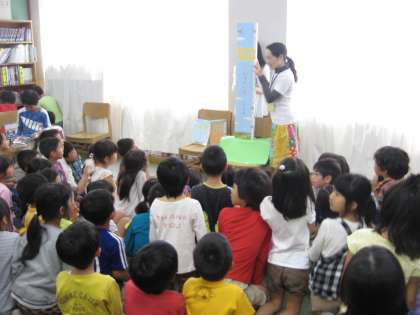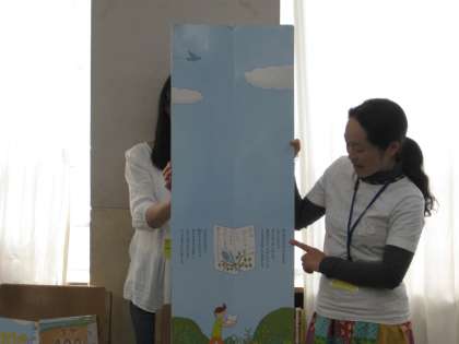 この本,普通サイズではなく,なんと‘たてになが〜い本’でした。子どもたちはびっくり!