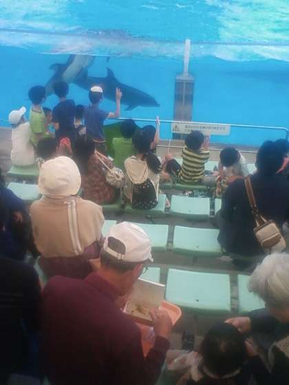 おうちの方に早朝より用意していただいたお弁当をしっかりと食べ,1時からは楽しみにしている人も多い『イルカショー』が始まります。みんなワクワク!です。