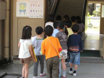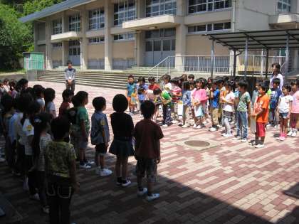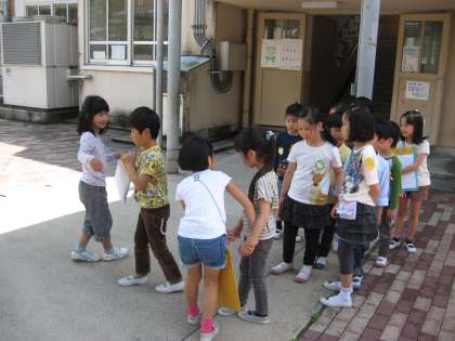 まずは,2年生と対面して,しっかりあいさつをしました。そして,約束などを確認して,たんけんに出発しました。