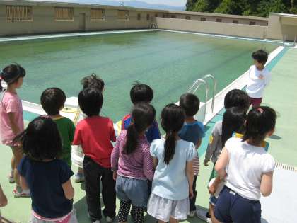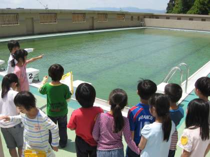 「今は汚れているけれど,プールが始まるまでに,6年生と教職員でそうじをします。」