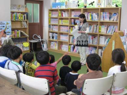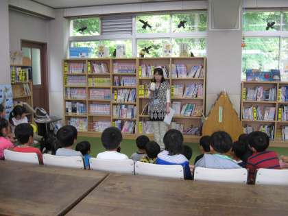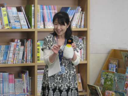 今年度は早速,1年生の読書指導の支援に入ってもらいました。パペットを使って,親しみやすく学びました。
