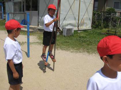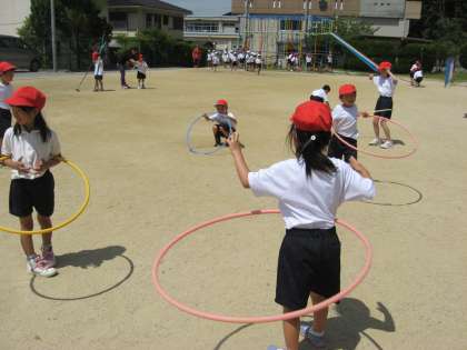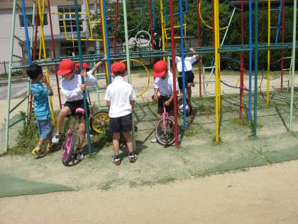 三角うま,一輪車,たけうま,フラフープなどの「ようぐ」を使っての学習です。