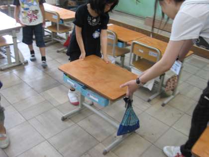 ぞうきんで拭くとき,物をどけてきちんと拭いています。
