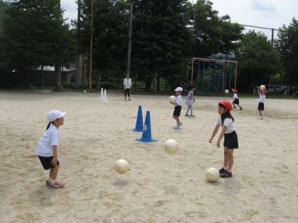 ボールを使って,生き生きとやっています。