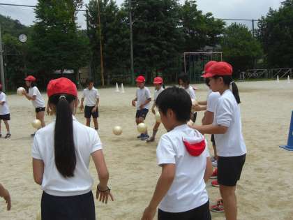 3・4時間目に,サンガから池上コーチが来校されて,ボールを蹴る活動だけではなく,友達と力を合わせることの大切さや喜びを教えていただきました。子ども達は,暑さもふっとばして,どのようにしたら,ゲームをクリアできるか,声をかけあって頑張りました。最後は,4対4で試合をしました。