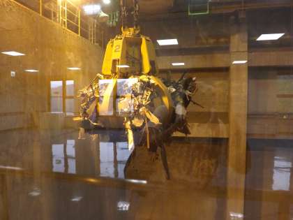 とても大きな建物の中を順に見学しました。大きなクレーンやパッカー車が入ってくるプラットホーム,中央制御室などを見せていただきました。どの子どもたちも真剣に学習