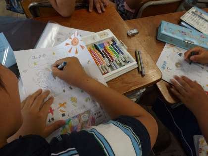 いよいよみさきの家まで1週間になりました。今日はみさきの家のしおりをみんなで作りました。しおりの表紙にていねいに色を塗っていました。ワクワク感いっぱいの子どもたちでした。
