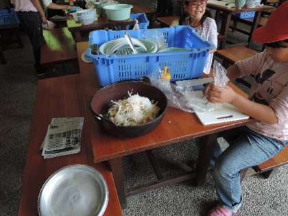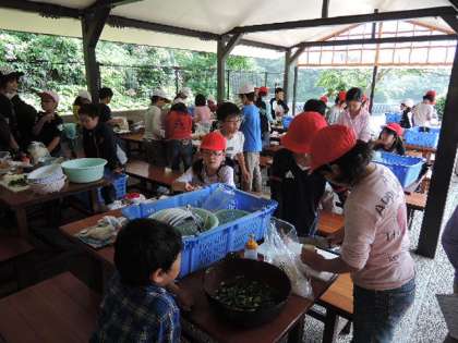 野外炊事の様子です。下準備や日の準備に悪戦苦闘です。