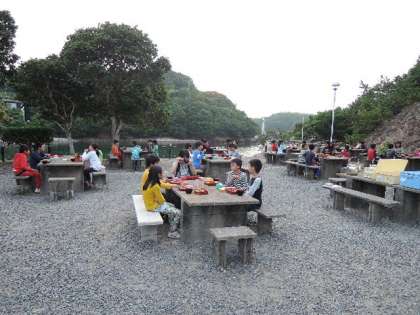夕食の様子です。深谷水道で食べました。海からの風が心地よいです。ごはんもすすみます。