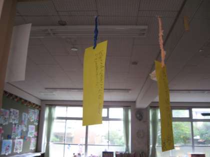 七夕を思いながら,短冊に願いごとを書きました。