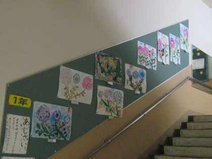 今,1年教室及び南校舎階段には,かわいらしいあじさいが‘満開’です!