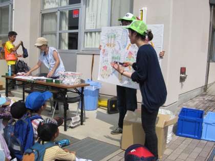 大学生のお兄さん・お姉さんから,説明がありました。絵もあってわかりやすかったようです。