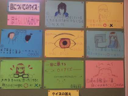 また,保健委員会では,「目に関するクイズ」を作り保健室前の廊下に掲示しました。
