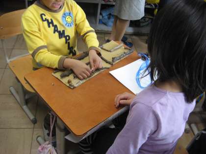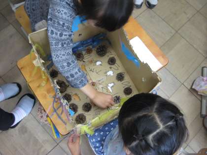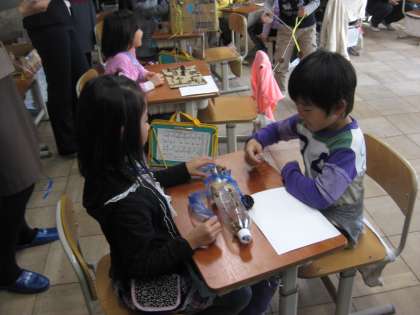 お店屋さんは,「楽しいところ」と「秋らしくしたところ」をお客さんに説明して進めています。